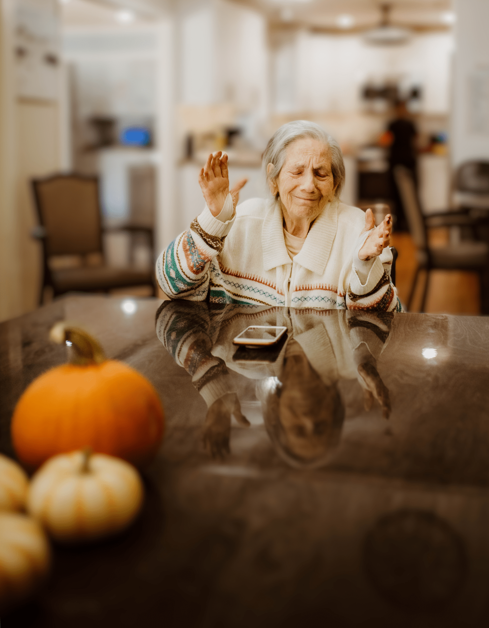 Frame a picture worth taking. Focus on the smile Mom exchanges with her grandbaby, or zoom in to show her absorbed in a puzzle. Capture her far-away gaze in the garden and her delight at joining the sing-along with a tambourine.